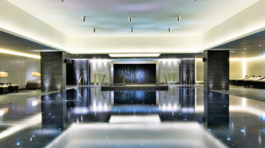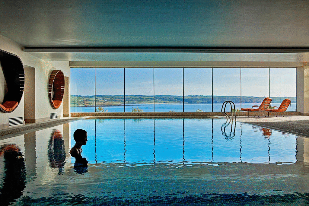 Set in the Wicklow Mountains, Powerscourt’s spa is a study in understated elegance. Its ESPA therapies are complemented by a 20-metre Swarovski crystal-lit pool that feels more like art than exercise. The surroundings are as restorative as the treatments, with the gardens of Powerscourt Estate and the waterfalls nearby offering nature’s own therapy. Add in sleek suites and fine dining at Sika restaurant, and you have a spa break that balances refinement with Irish grandeur.