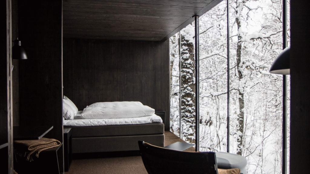 For those who want skiing with a touch of cinematic drama, Juvet Landscape Hotel in Valldal is extraordinary. Scattered glass cabins dissolve into the snowy wilderness, offering uninterrupted views of forests and peaks. Known for its role in the film Ex Machina, it feels otherworldly yet deeply rooted in Norwegian minimalism. Winter here is about intimacy: private saunas, cross-country trails, and silence broken only by the crunch of snow.