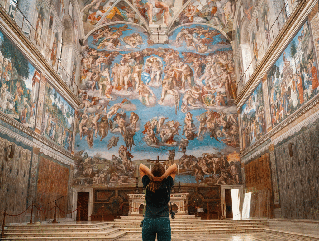 To see Michelangelo’s frescoes is to see human genius at its most divine. Inside the Vatican Museums, among sculptures and masterpieces by Raphael and Caravaggio, the Sistine Chapel stands as the crown jewel. The ceiling, painted in the early 1500s, feels almost alive, a swirling cosmos of prophets and angels. Go late in the day if you can, and linger as closing time nears. When the crowd thins and the room quiets, you’ll find yourself alone with the Creation of Adam, one of the rarest luxuries in the world.