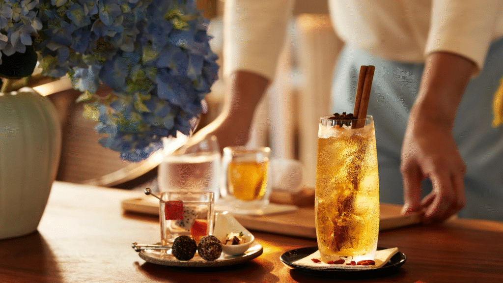 The riverside Tea Lounge became my favourite ritual. Each afternoon, I’d sit with a pot of chrysanthemum tea and tiny almond biscuits, watching the light soften over the water. Sixty blends are available, each selected for a different intention : digestion, focus, sleep. It’s a slow, sensory form of healing that lingers.