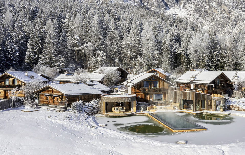Nestled in the Leogang Mountains, PRIESTEREGG Premium ECO Resort is winter perfection. Each private chalet is a self-contained love nest complete with a fireplace, Finnish sauna, hot tub, and terrace that opens onto snow-blanketed peaks.
