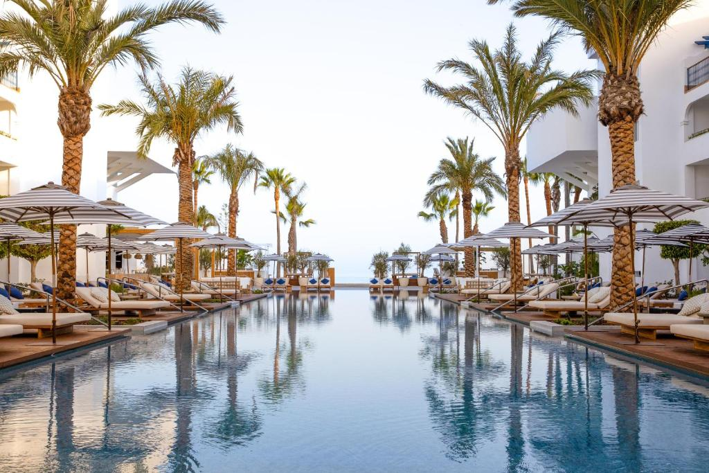Days melt away between couples’ massages, dips in the heated indoor pool, and beachfront lunches at Azure Beach Club, where sushi, sashimi, and sea breeze are served in equal measure. Evenings unfold over candlelit dinners at Ammos or Isola before a nightcap at El Bar de Lola. The vibe? Effortlessly romantic, endlessly relaxed.