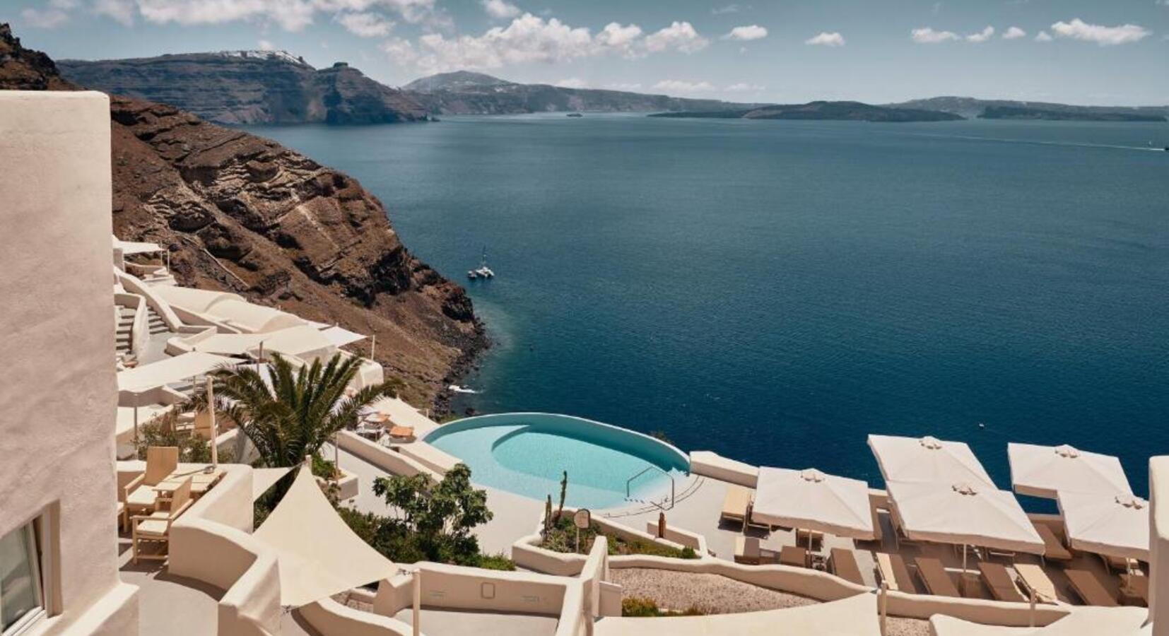 Perched on the cliffs of Oia, Canaves Oia Suites translates Santorini’s classic cave-house typology into a discreetly sumptuous experience. Rooms are white volumes punctuated by sculptural pools and private terraces; marble and raw timber meet in a palette designed to let the view be the star. Where some hotels feel staged for postcards, Canaves composes frames that you will want to inhabit, not merely photograph. Dining twines tradition and refinement: seafood with citrus lifts, local olive oil used as punctuation rather than an afterthought: and there is a sense that every staff gesture is choreographed to enhance calm. It’s a place for those who love the ceremony of travel: long dinners, late-night vodka-cranberries on a moonlit terrace, and sunrises that promise an easier version of the world.