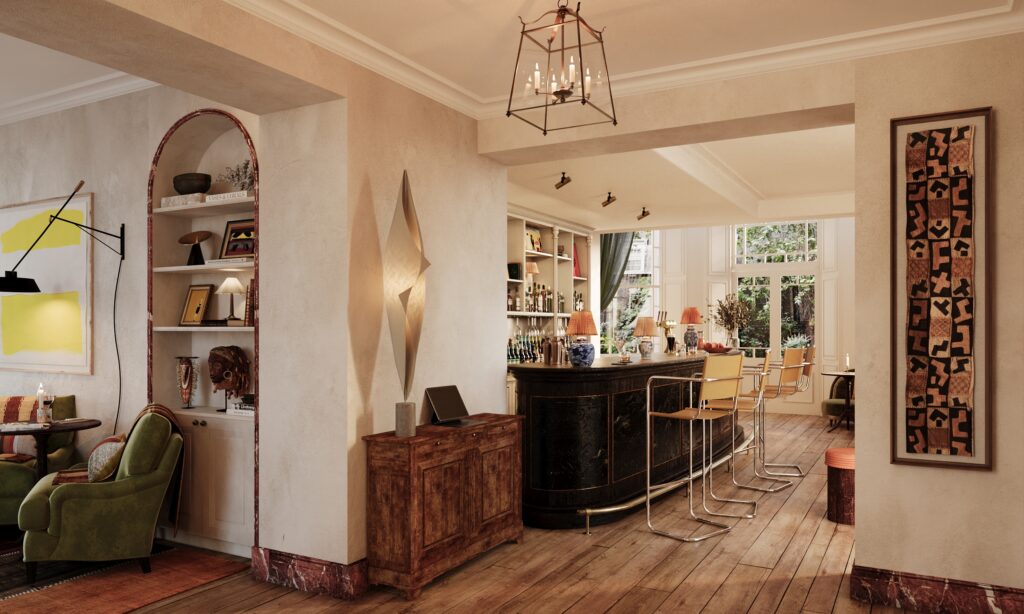 The Parlour, just beyond the entrance, will act as the hotel’s living room: a tranquil retreat for morning coffee, light lunches, or an evening martini under the glow of vintage sconces. Its mood shifts effortlessly through the day, from the quiet hum of breakfast to the low chatter of cocktail hour.
