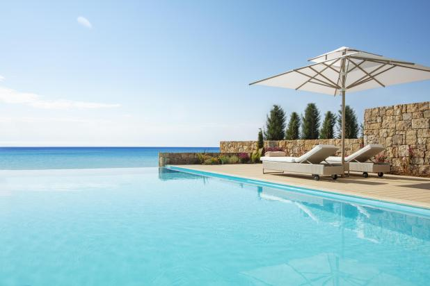 Elix is built high above the Ionian Sea, and the scale of the landscape is striking. Cliffs, water, sky: everything feels open and expansive. But the hotel doesn’t compete with that drama. Architecturally, it blends into the hillside rather than asserting itself over it.
