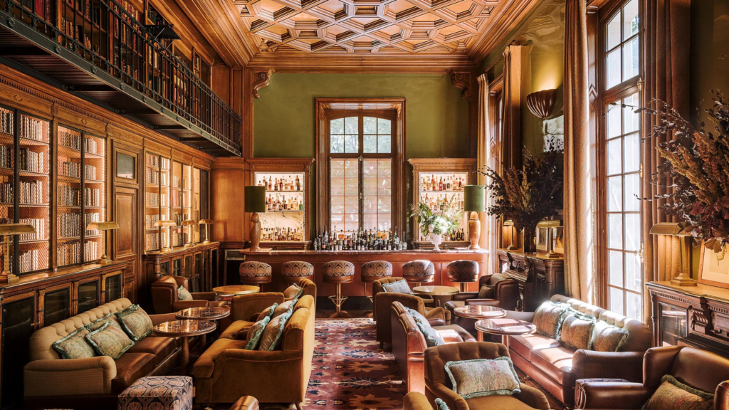 The only château-hotel in Paris. Not château-inspired, not château-adjacent; an actual 19th-century neoclassical château, surrounded by private gardens, in the most exclusive residential district in the city. Saint James Paris began as the world’s first hot-air balloon launch site in 1783, later became a school, then a London-style private members’ club, and is now, in its most beautiful chapter, a Relais & Châteaux hotel with decor by Laura Gonzalez and a 400-square-metre Guerlain spa. The legendary library bar, all dark wood panelling and books from floor to ceiling, is one of the great rooms of Paris, and the perfectly made cocktails served within it deserve their own reputation. The Michelin-starred restaurant Bellefeuille, anchored in produce from the hotel’s own organic gardens, is the kind of dinner you’ll reference for months. Fifty rooms and suites, every one of them exceptional. The kind of address that shifts your understanding of what a Paris hotel can be.