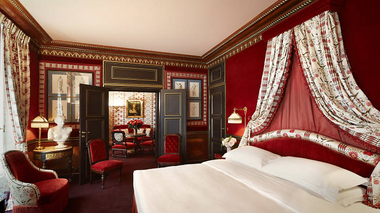 A love letter to Belle Époque Paris, and one of the most atmospheric hotels I have encountered anywhere. With just 23 rooms and suites, Maison Proust feels more like a collector’s townhouse than a hotel: intricate wallpapers, gilded Venetian mirrors, a fireplace that belonged in Versailles, and velvet-upholstered salons that evoke the literary and artistic gatherings of the 19th century in the most visceral way. Each private salon is dedicated to a figure of the Belle Époque, filled with portraits and objets d’art that make you feel you’ve stepped into an exceptionally beautiful novel. The subterranean Spa La Mer, one of only two in Paris, is a jewel-box of mosaic-tiled alcoves and candlelit corners, and on Fridays, legendary mixologist Colin Field takes over the salon and transforms it into an intimate stage, his cocktails a form of pure performance art. If you love Paris for its history and its romance, this is your hotel.