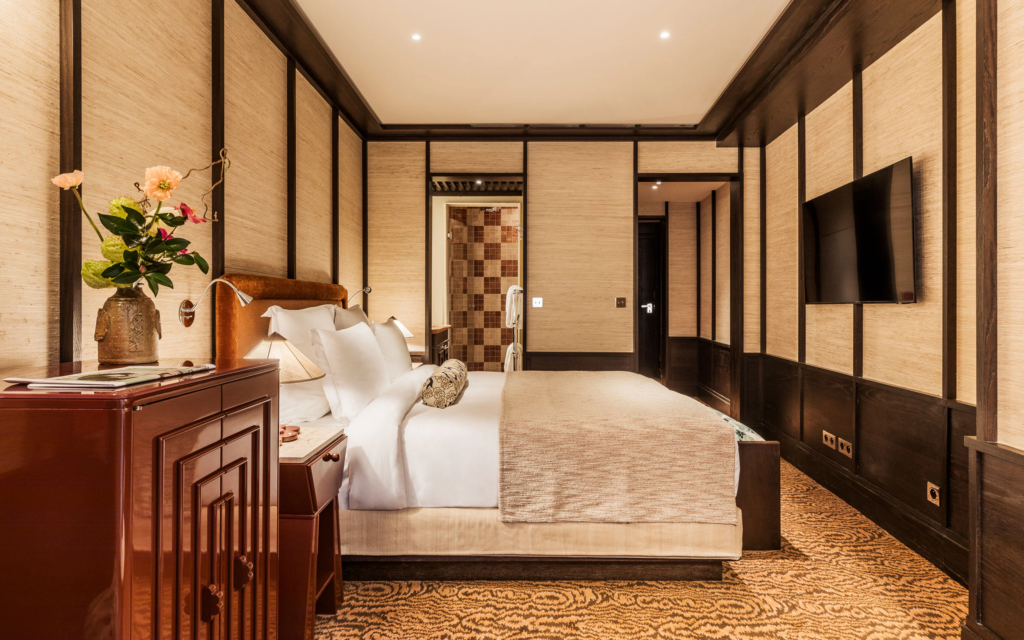 One of the first properties in France to be awarded ‘Palace’ status, and an address that has been a benchmark of Parisian grand luxury since 1925. You arrive in a majestic atrium, you are guided through corridors of plush and perfectly judged elegance, and you begin to understand that Le Bristol exists at a standard that is genuinely its own. The Jardin Français: the hotel’s courtyard garden, green and fragrant and hidden from the street; is the quiet miracle at its heart. The triple-Michelin-starred Épicure is one of the most celebrated tables in France.